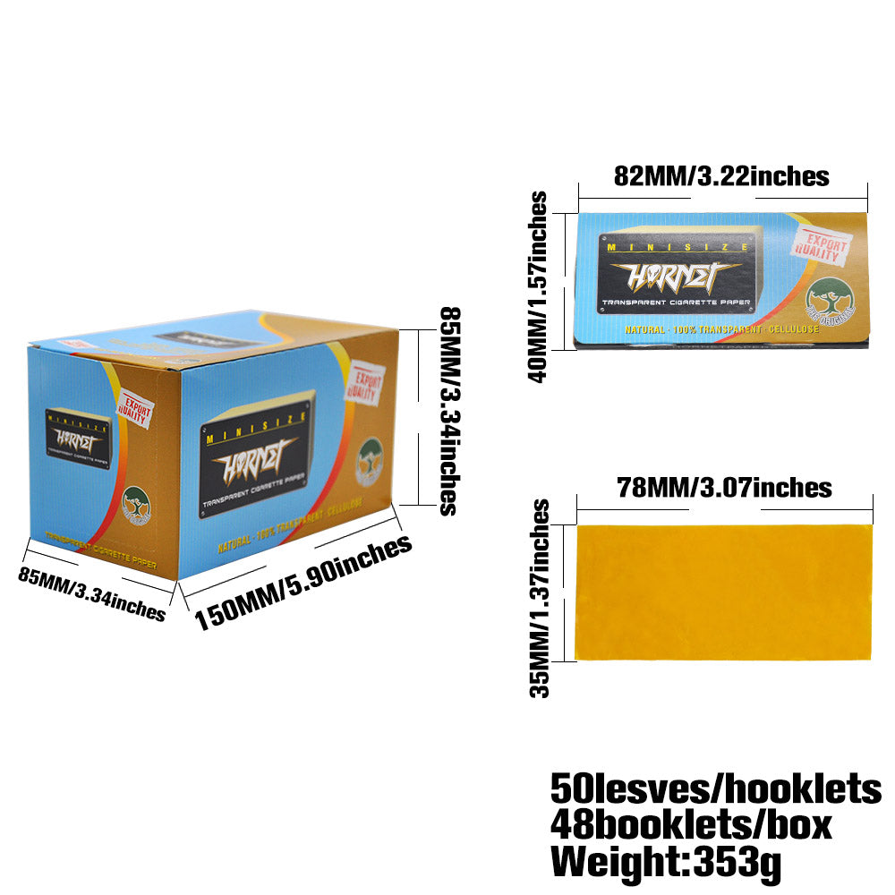 HORNET Gold Transparent Cellulose Rolling Papers, 1 1/4 Size Clear Rolling Paper, 50 Pieces / Pack 48 Packs / Box