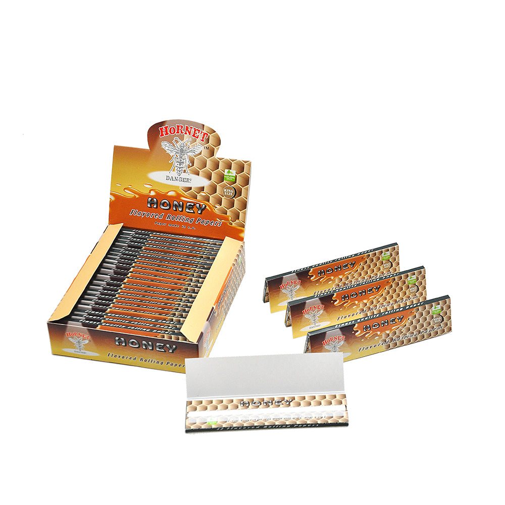 HORNET King Size Honey Flavors Rolling Papers, Slim Natural Organic Rolling Paper, 32 Pieces / Pack 25 Packs / Box